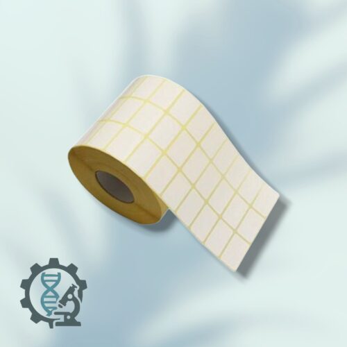 دارای ضخامت 60 تا 75 میکرون جهت تشخیص صحیح فاصله برچسبها توسط سنسور پرینتر. فاصله استاندارد (Gap) بین دو برچسب 2 تا 3 میلیمتر در نظر گرفته میشود. - چسب: