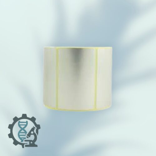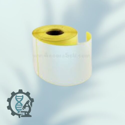 لیبل صدفی (PVC) سایز 200×100 میلیمتر تک ردیف 300 عددی با بوبین کوچک، مقاوم در رطوبت و گرما، چسب هات‌ملت، مناسب چاپ با ریبون وکس رزین یا رزین 110 میلیمتر.